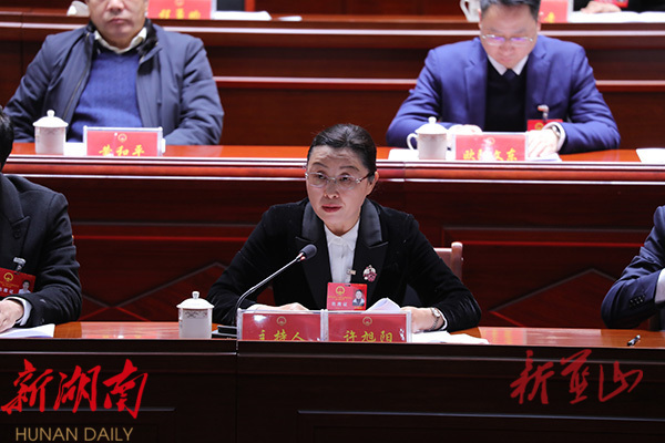 蓝山县人大常委会副主任吴忠心受蓝山县第十八届人大常委会委托,向大会作工作报告。吴忠心在报告中说,2024年,蓝山县人大常委会强化政治引领,在坚持党的领导中凝聚人大共识,坚持依法履职,在服务中心大局中彰显人大作为,发挥代表作用,在践行全过程人民民主中担当人大使命,加强自身建设,在打造“四个机关”中树立人大形象。