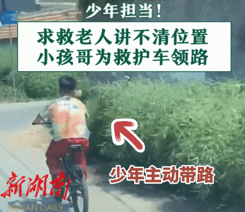 2024年4月27日,江苏徐州,120急救中心接到一名老人求助电话,由于老人无法说清具体位置,救护车工作人员向路口一名骑车的男孩问路,他二话不说调头为救护车带路。
