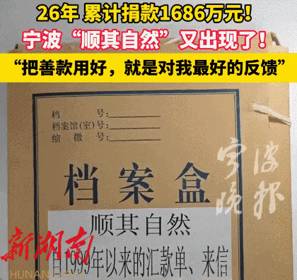 2024年11月15日,浙江宁波,宁波市慈善总会收到“顺其自然”的来信和109万元捐款。从1999年起,“顺其自然”坚持每年向宁波市慈善总会捐款,这已是第26次,累计金额高达1686万元。