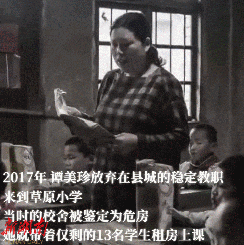 谭美珍,湖南邵阳隆回县虎形山瑶族乡草原小学校长。8年前,谭美珍主动从县城回村支教,那时学校只有1个老师13个学生。现在,这里有29个老师257个学生。