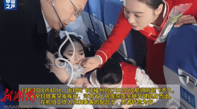 2024年12月7日,由河南郑州飞往福建福州的一航班上,一名孕妇突发疾病意识不清。同一航班的医生姚文健听到寻医广播后,立刻赶来。