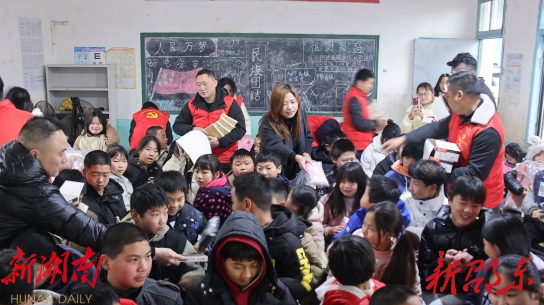 新邵东客户端3月5日讯(记者 邓远) 3月5日,共青团邵东市委联合市青年企业家协会到野鸡坪镇欣佳学校开展“青春志愿行”主题活动,为该校76名留守儿童捐赠学习用品,以实际行动践行雷锋精神,传递社会温暖。