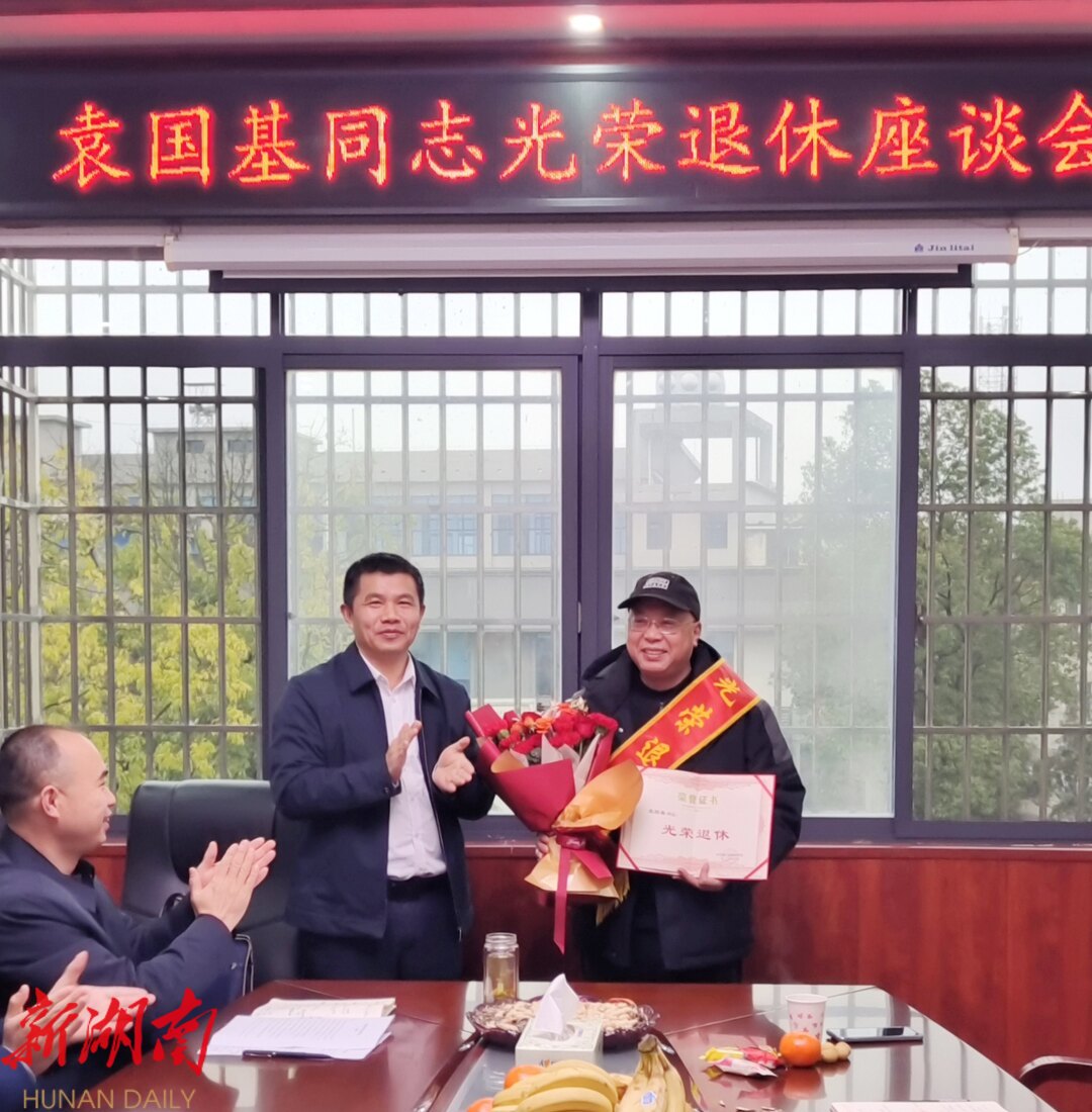 新洞口客户端3月5日讯(通讯员:武子婿 付桂芳) 3月5日,县委宣传部为坚守宣传战线36载的袁国基同志举行 “ 退休不退志 薪火永相传 ” 荣誉退休座谈会。县委常委、宣传部部长唐煜出席 讲话 并颁发荣誉退休纪念证书。