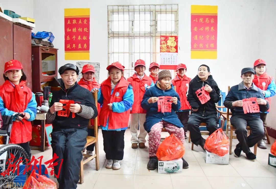 启动仪式结束后,志愿者前往新邵县酿溪镇敬老院开展关爱服务。小志愿者们化身为小演员,为老人表演舞蹈、古筝演奏等节目,并将牛奶、水果等送到老人们手中,展现了青少年在志愿服务中的传承与担当。