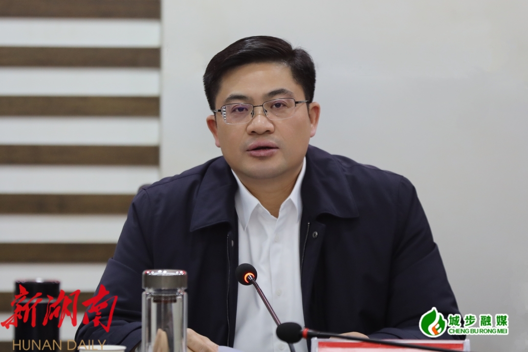 图为邵阳市人民政府党组成员、副市长、城步县委书记余勋伟在会上讲话