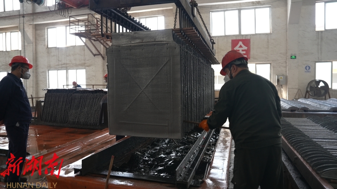 踏入柏林产业园内的永兴长隆环保科技有限公司生产车间,智能化的生产设备运行有序,工人们动作娴熟地将阳极材料稳妥放置在电解槽中。整个车间内,繁忙的景象与蓬勃的活力交织,奏响着工业生产的激昂旋律。在经过一系列严谨且精细的工序后,有着“工业味精”美称的金属锡成品便完美亮相。