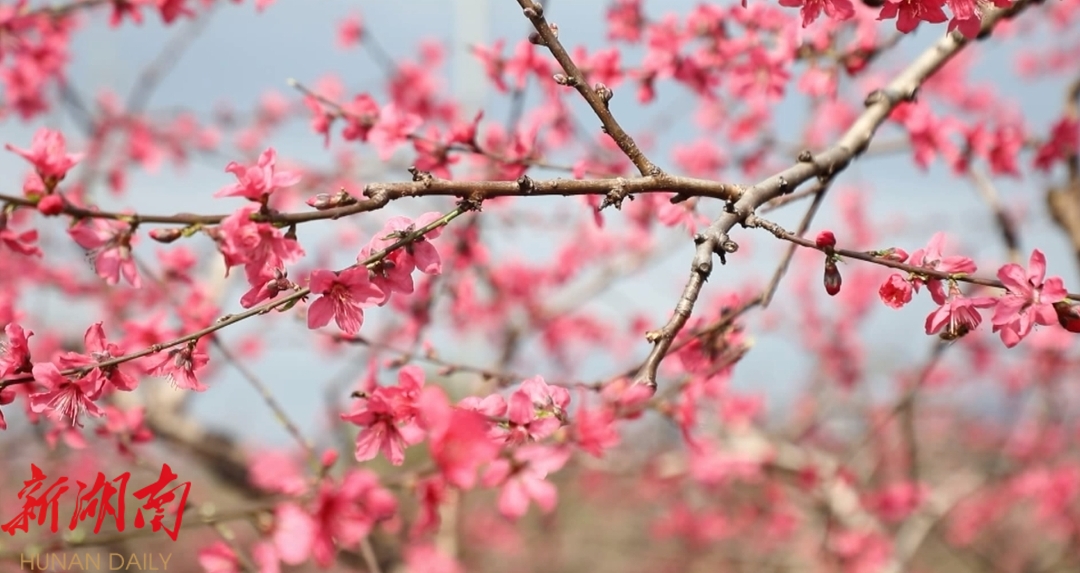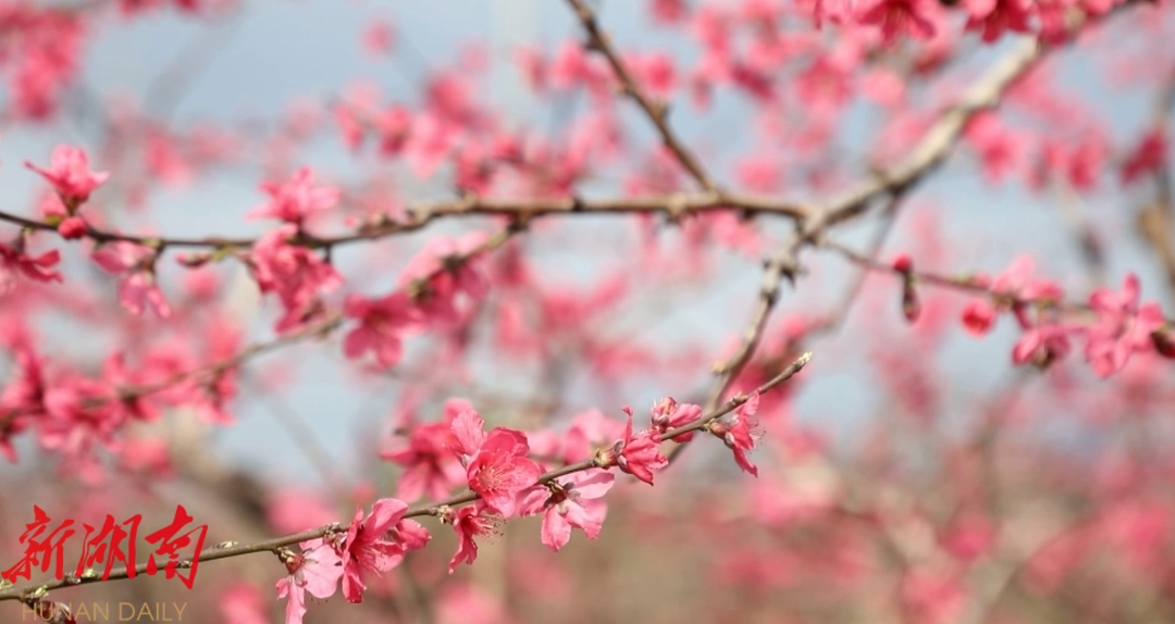 湖南日报·新湖南客户端3月6日讯(通讯员 李严军) 阳春三月,正是桃花盛开的时节。在宁远县实验中学旁的水果基地里,成片的油桃竞相绽放,粉里透红的桃花一朵紧挨一朵,娇艳欲滴,浓郁的花香引来无数蜜蜂采集花蜜。周末阳光明媚,一波又一波游人前来踏青赏花,在花海中拍照打卡,尽情享受这无限春光。
