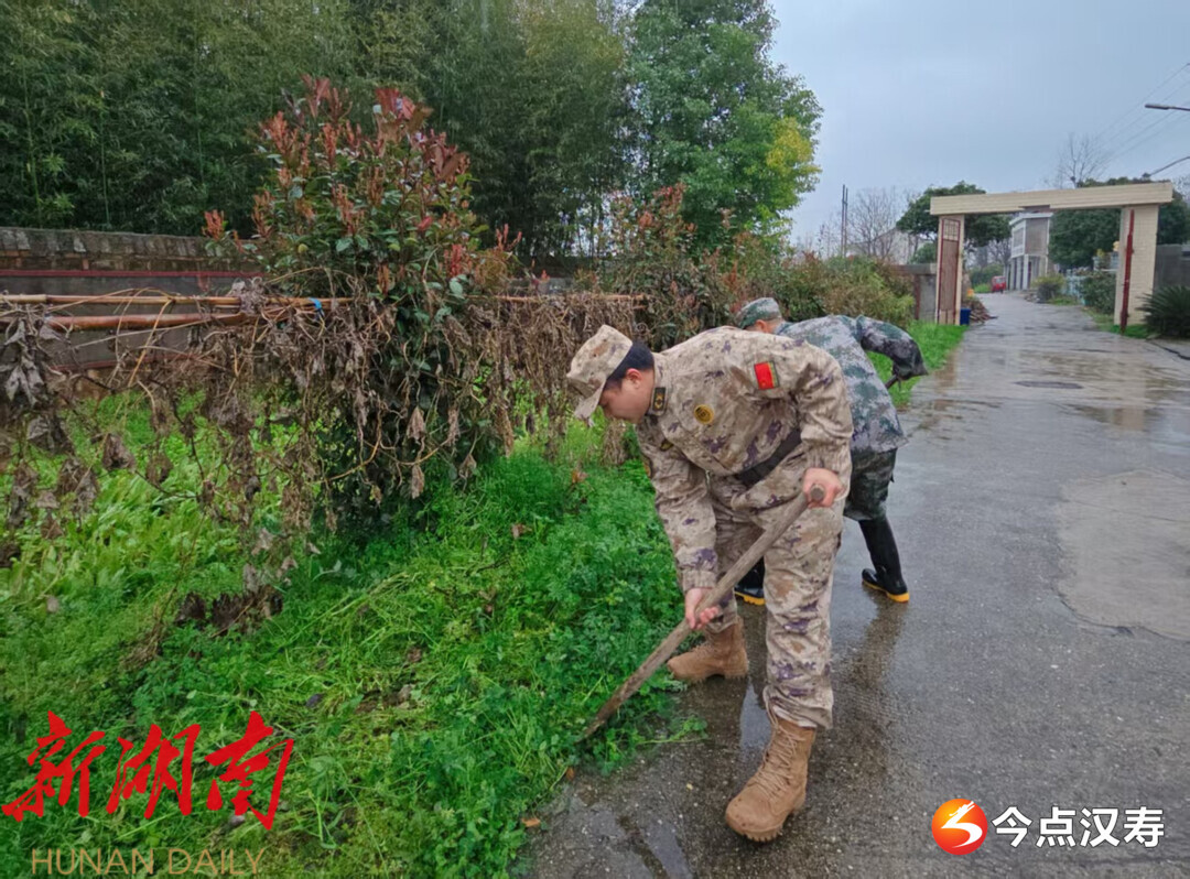 当天,洲口镇的民兵志愿者们迅速行动,分工明确、有条不紊。部分志愿者走进老人的房间,仔细打扫每一个角落,精心整理床铺,让原本略显凌乱的房间焕然一新;部分志愿者 则来到院落,认真清理丛生的杂草,不放过任何一处卫生死角。