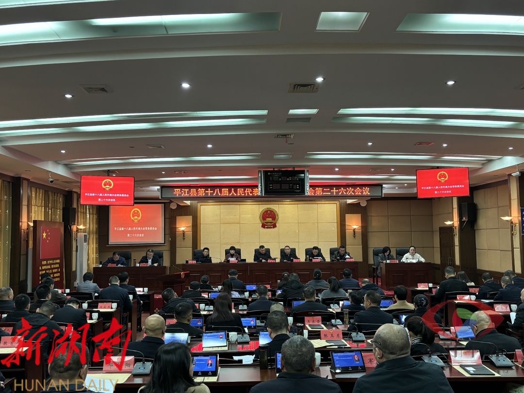 2月28日, 平江 县 第 十八届人民代表大会常务委员会召开第二十六次会议,县人大常委会主任凌晓明,县人大常委会副主任李立明、李泓、李远志、吴尚勇、罗江伯出席会议,县委常委,副县长仇文娟,副县长候选人林洁、张波、张大礼以及县监察委员会、县人民法院、县人民检察院等相关单位负责人列席会议。