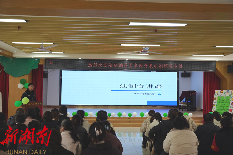 为了构建更安全的校园环境,园方特意聘请县龙阳派出所副所长,为园区“法制辅导员”,并现场授课。法制辅导员围绕《未成年人保护法》《教师职业行为准则》,深入剖析性侵未成年人犯罪的特征及预防要点,详细讲解了教职工在发现侵害线索时的报告流程与法律责任,让教职工深刻认识到保护未成年人的重要性和紧迫性。