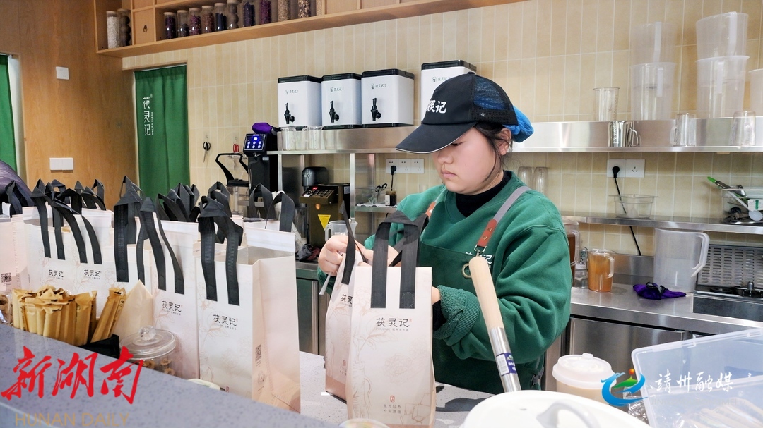 当天,在县城主要街道及农贸市场等多个爱心赠送点,都能看到“茯灵记” 员工的身影。她们 为女性朋友们递上了以茯苓、黄精等中药材调制的养生茶饮 ,如“茯苓芋泥紫米麻薯”“人参熬夜水”等,并送上节日祝福。