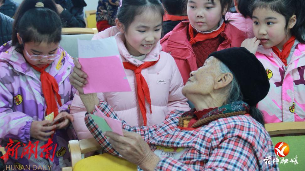 活动中,少先队员们还协助工作人员打扫卫生、整理房间,为老人捶背揉肩、讲故事,并送上亲手制作的祝福卡片和小礼物。