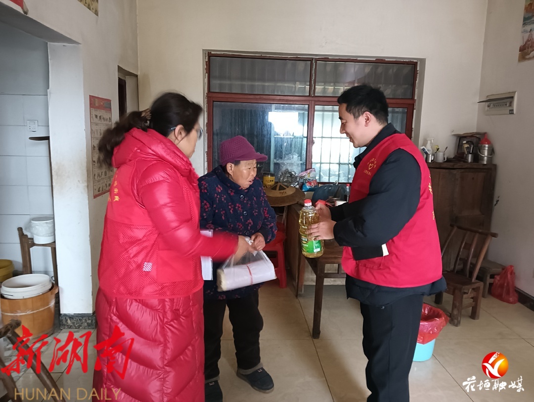 活动中,志愿者们手持铁铲、扫把等工具,帮助村里的“五保 ”老人打扫卫生,清理院内堆积的树叶和垃圾,改善老人的生活环境。同时,志愿者们还向村民发放“创城宣传单”和“垃圾分类宣传单”,普及生活常识和文明城市创建知识,提升村民的环保意识。此外,志愿者们组织帮扶村群众学习2025年中央1号文件精神,宣传党的乡村振兴及惠农政策,帮助村民了解政策、用好政策。活动结束后,志愿者们还为“五保 ”老人送上面、油等慰问物资,传递温暖与关怀。