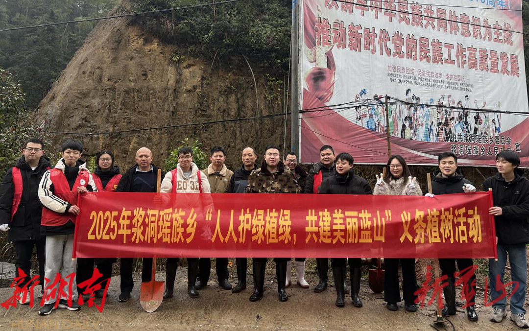 湖南日报•新湖南客户端3月7日讯 (通讯员 雷统钦)3月7日,浆洞瑶族乡组织干部职工、林业站成员等20余人开展义务植树活动,以实际行动为瑶乡大地增绿添彩。