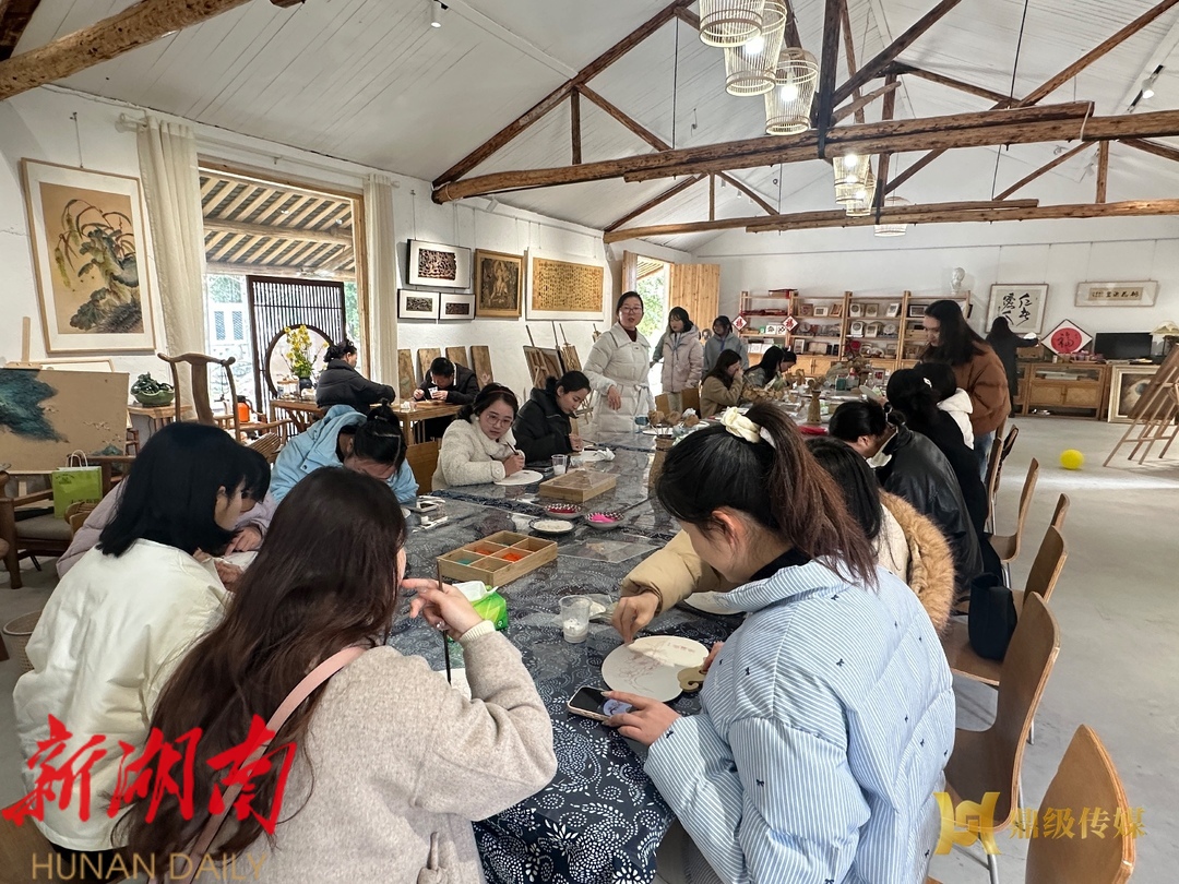 在听取非遗传承老师讲解常德麻质画的制作工艺后,大家对这门传统技艺有了更深入的了解。在非遗工坊,大家热情高涨,全身心投入到麻质画创作中,一幅幅作品或色彩斑斓,或简约质朴,承载着对传统文化的热爱与传承。