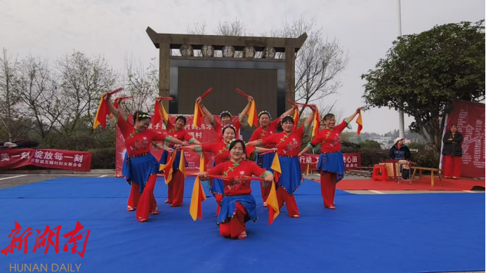 湖南日报·新湖南客户端3月7日讯( 通讯员 彭宜兰 卢木森)“唱起来、舞起来,相聚广场大舞台,巾帼志愿展风采……”近日,长沙县江背镇福田村,舞蹈队员们身着整齐的服装,一边擂着鼓,一边翩翩起舞。