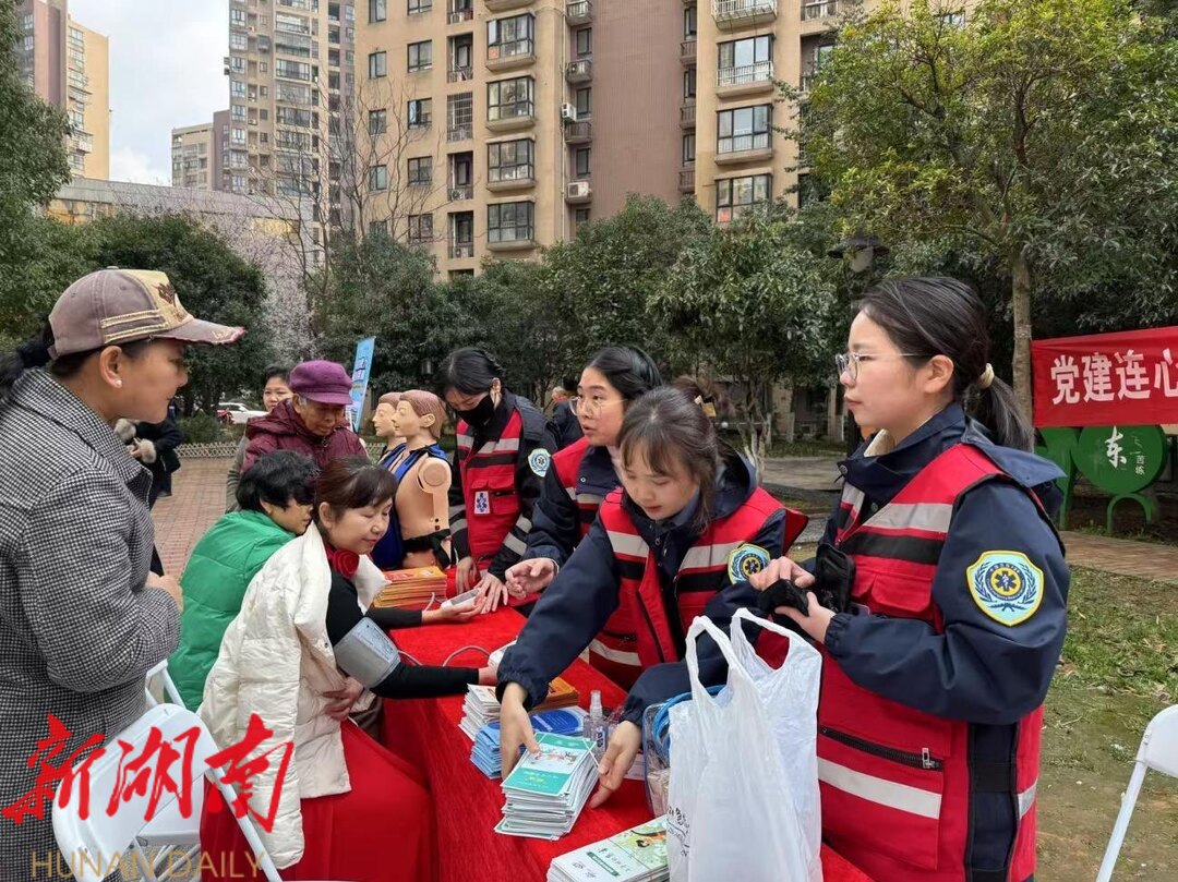 授牌仪式后,认领项目的多家单位现场开启服务:长沙市120急救中心现场为居民提供免费血压测量、急救知识咨询等服务;长沙星城宏朗眼科医院为居民做眼部检查,普及护眼知识;幼儿园为大家提供早教咨询……各个志愿服务专区吸引众多居民参与。“护航生命”专区中,医护人员手把手教授海姆立克急救法,王大爷在培训后感慨:“学会这些技能,关键时刻能救命!这样的共建活动真是办到老百姓心坎里了。”
