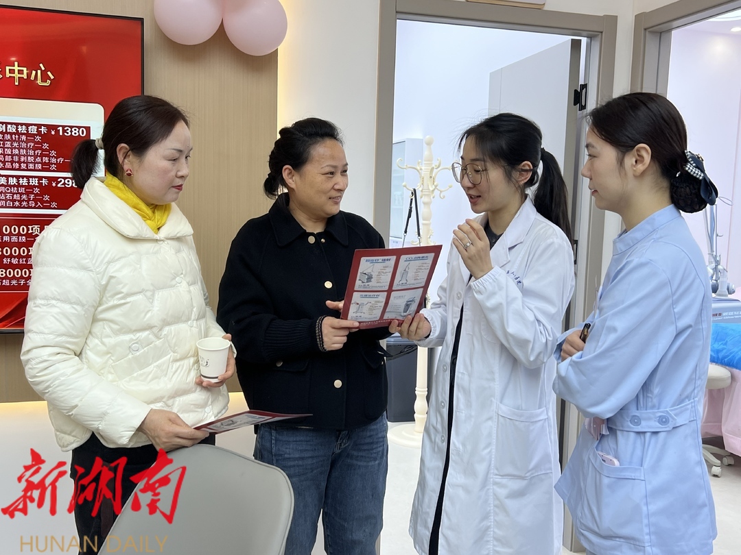 上午10点,医疗美容中心门诊前来咨询的人们络绎不绝,众多优惠活动吸引不少市民提前到场等候。科室以“医疗本质+美学设计”为核心,设有独立的面诊室、治疗室及术后观察区,环境私密温馨。“在湘阴就能变美,不用跑外地去了,对于我们这些爱美人士来说,安全放心又方便。 ”市民刘女士说道。