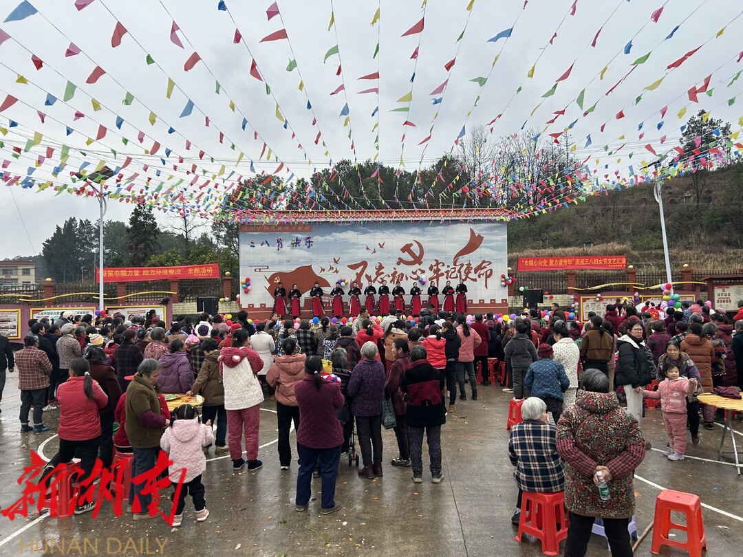 新洞口客户端3月8日讯(记者:王颖蓓 胡海鹏) 为庆祝“三八”国际劳动妇女节,3月8日,竹市镇安南村举办以“巾帼心向党 聚力谱芳华”为主题的文艺演出活动,节目内容丰富、形式多样,充分展现了新时代农村妇女积极向上的精神风貌。