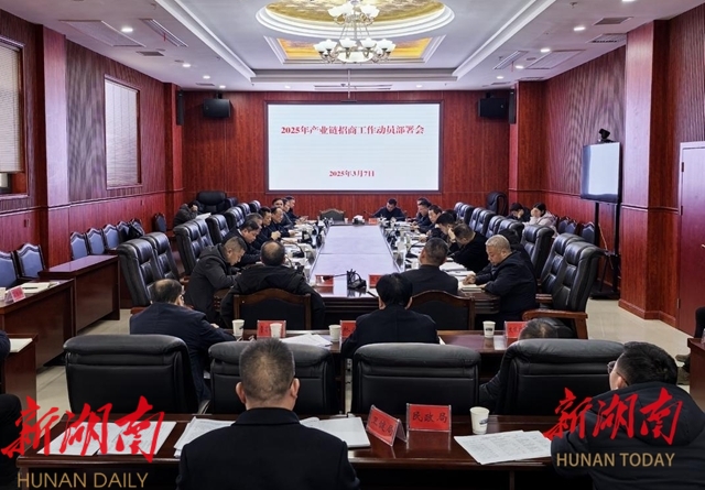 湖南日报·新湖南客户端3月8日讯(通讯员 康爱军 曾振科)3月7日,新化县委副书记、县长彭韬主持召开2025年产业链招商工作动员部署会。县领导杨韶红、李笃成、邹谊翔、鄢洛阳、杨铁贞、张政兵、罗轶民、陈元怀、陈永松、袁铭锋、段智洪出席。