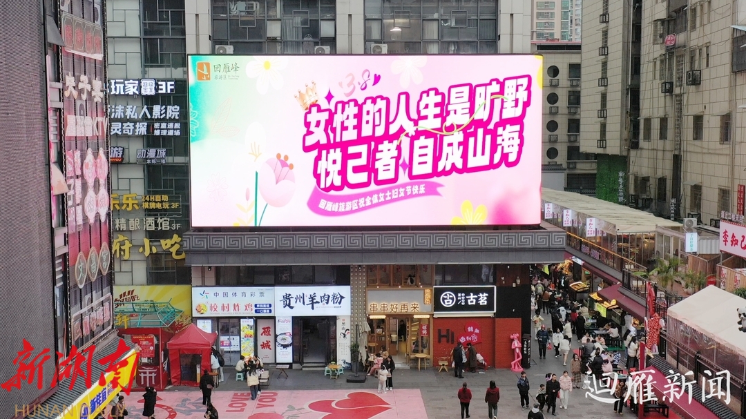 为庆祝“三八”国际妇女节,3月8日,雁峰区回雁峰景区、市府路美食文化街区等地大屏同步点亮,为女性献上节日礼赞,光影里的每一句祝福都传递着城市的温度。