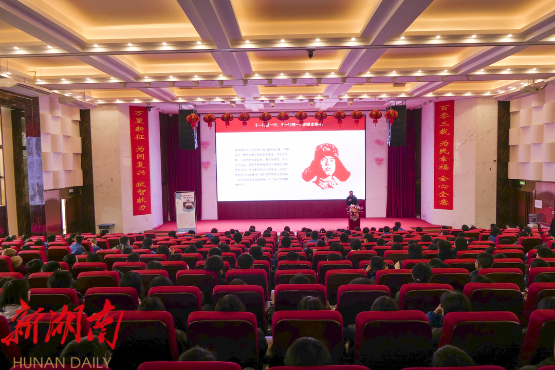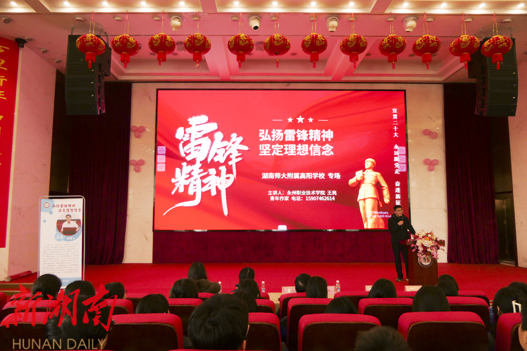 活动特邀中国作家协会会员、《雷锋的故事》作者、永州职业技术学院思政课教师王亮作专题宣讲报告,从“了解雷锋、感悟雷锋、学习雷锋”三个维度深入解读雷锋精神的内涵与时代价值。以一个个真实感人的故事为载体,生动展现了雷锋热爱党、热爱祖国、热爱社会主义的爱国精神,服务人民、助人为乐的奉献精神,干一行爱一行、专一行精一行的敬业精神,锐意进取、自强不息的创新精神,以及勤俭节约、艰苦奋斗的创业精神。在场的好些同学被雷锋的悲惨童年和事迹感动得热泪盈眶,纷纷表示要向雷锋学习争做时代好少年。