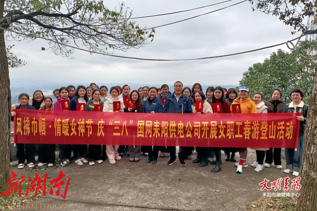 为庆祝“三八”妇女节,丰富女职工生活,国网耒阳市供电公司组织了“春风拂巾帼·情暖女神节”春游登山活动。当天春寒料峭,90多名女职工精神抖擞地聚集在山脚。随着一声令下,她们如离弦之箭,踏上征程。崎岖山路上,她们互相鼓励,携手前行。沿途风景如画,但她们始终坚定步伐,向着山顶进发。经过近一个小时的攀登,女职工们陆续抵达山顶。