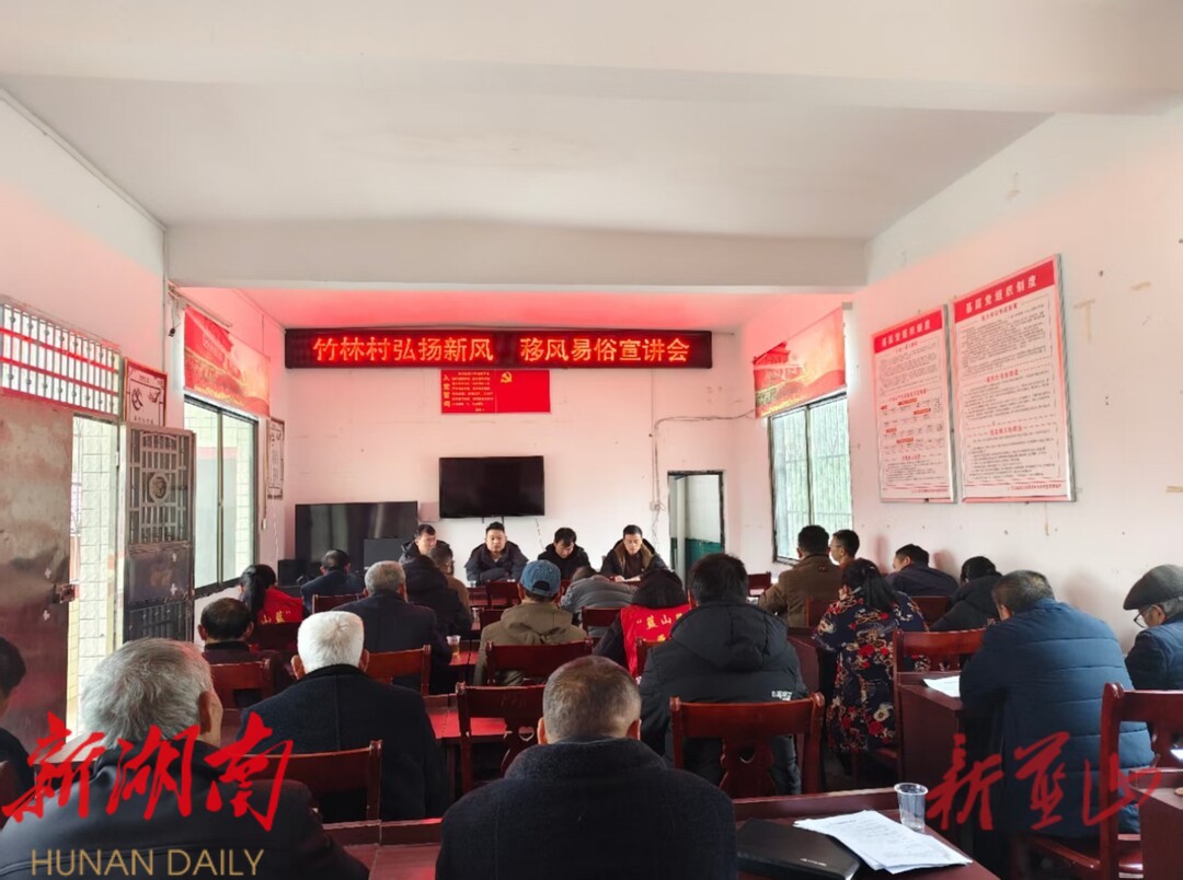 湖南日报•新湖南客户端3月10日讯 (通讯员 彭文香)3月8日,湘江源瑶族乡竹林村组织召开“弘扬新风尚 移风易俗”宣讲会,吸引了众多村民参与。