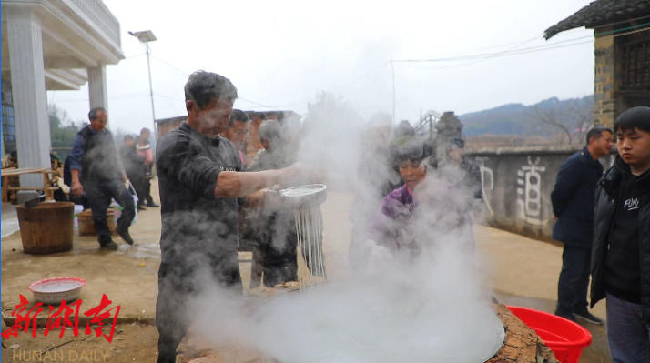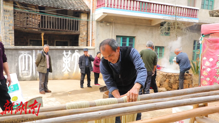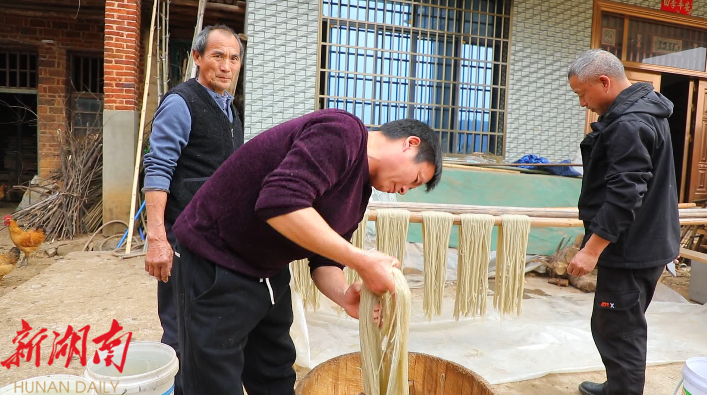 新湖南客户端3月3日讯(通讯员 陈学华 唐佳莉)在东安县大盛镇铁塘村,红薯种植历史悠久,家家户户都会制作粉条,因其制作的粉条色泽黄亮,耐煮劲道深受欢迎,成为市场“香饽饽”。近年来,铁塘村通过发展特色手工红薯粉产业,闯出了一条致富增收的好路子。