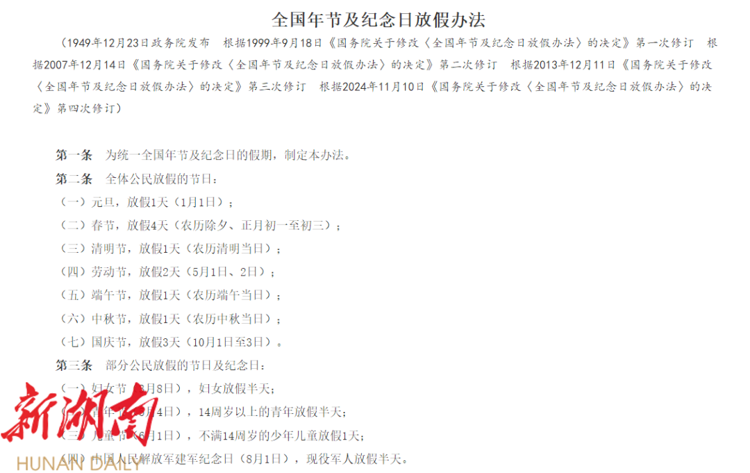 儿童节(6月1日),不满14周岁的少年儿童放假1天;