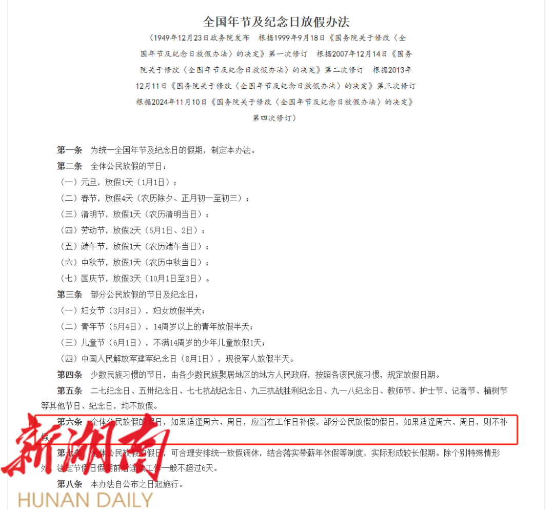 根据《全国年节及纪念日放假办法》,全体公民放假的假日,如果适逢周六、周日,应当在工作日补假。部分公民放假的假日,如果适逢周六、周日,则不补假。