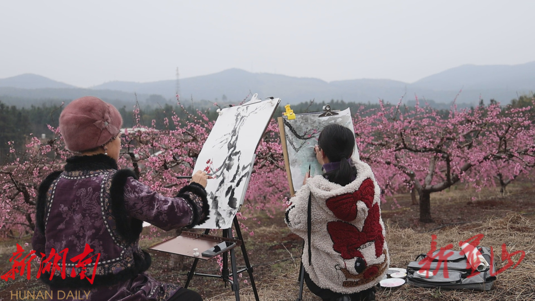 走进太平圩镇合坊家村的鹰嘴桃种植基地,漫山遍野的桃花映入眼帘,如天边流霞般灿烂夺目。一簇簇红粉、淡粉色的桃花开得正艳、分外妖娆,在青翠欲滴的嫩芽映衬下,更显鲜艳娇美。游客们漫步于桃林小径,时而停下脚步,欣赏花朵之美,感受春的温柔;时而拿起相机,定格美好瞬间;不少游客在纷纷扬扬的花雨中翩翩起舞,追逐嬉戏,尽享烂漫春光。桃树下,书画爱好者们目光专注,将这绝美的春色栩栩如生地描绘在画板之上。