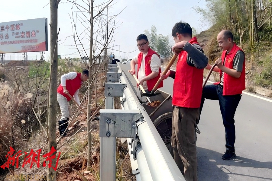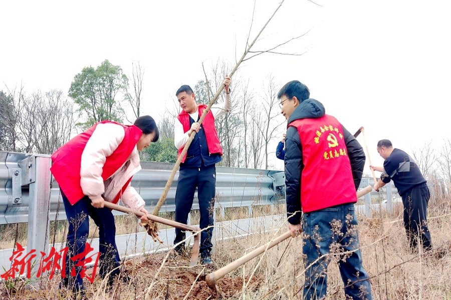 视外桃源客户端3月10日讯(通讯员: 张瑞琪 庄茜菡 聂喆 ) 春风又绿江南岸,植树添绿正当时!临近第47个植树节,佘家坪镇镇村干部、党员群众、青年志愿者等80余人,集体前往桃龙大道金子山天桥互通旁开展植树节活动,以实际行动践行“绿水青山,就是金山银山”的生态文明理念,为家乡添绿,为“秀美桃源”充“植”。