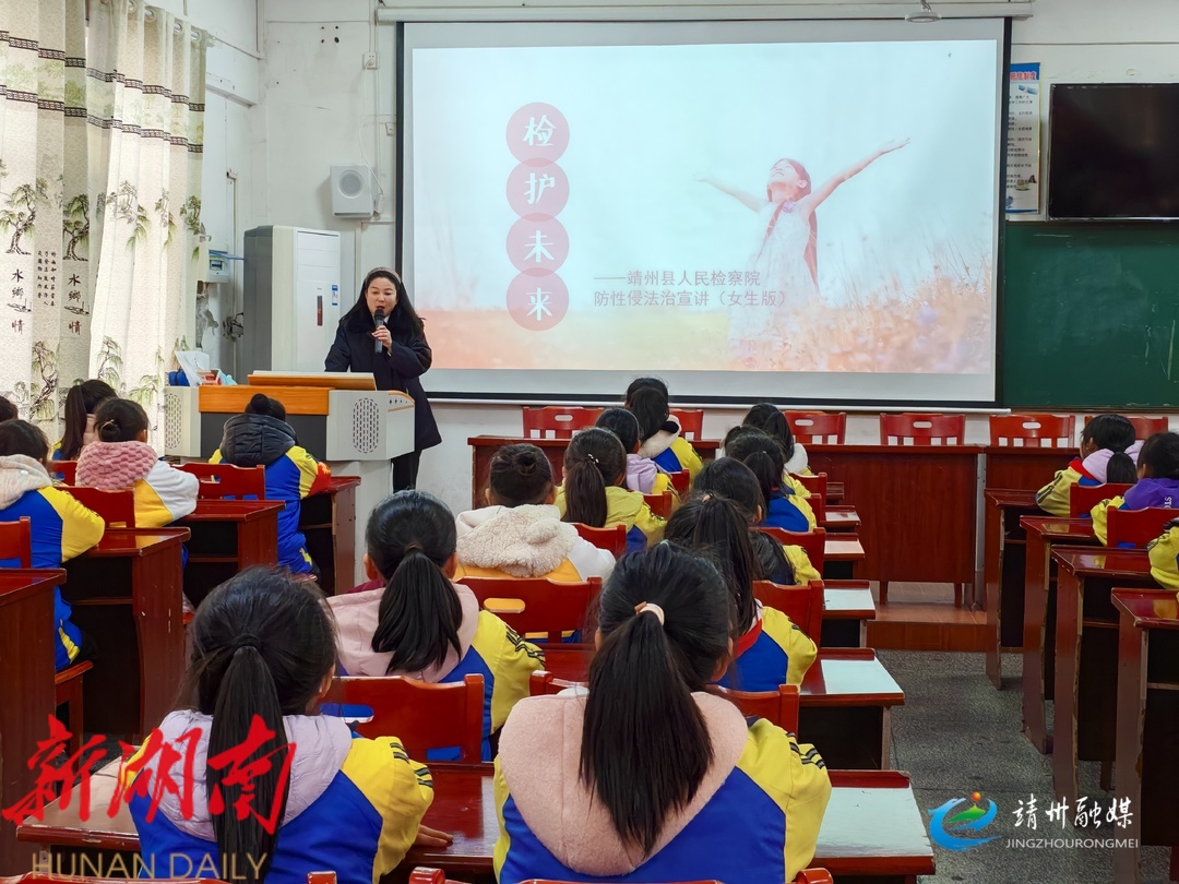 靖州融媒3月11日讯 (通讯员 刘蕾)3 月 11 日,在靖州苗族侗族自治县 飞山小学,一堂防性侵法治宣讲课为即将步入青春期的女生撑起了一片法治蓝天。