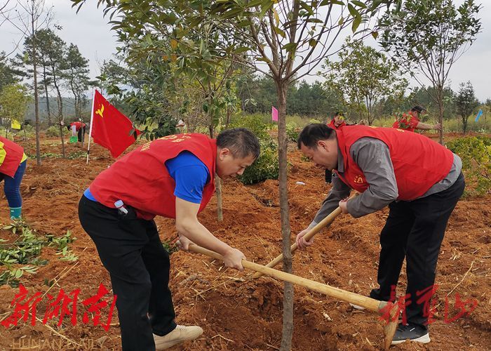 在塔峰镇蒋家洞植树点现场,大家分工有序,挥锄挖土,扶苗填土,踩实挂牌,配合默契,种下株株绿色树苗。在10多名党员、志愿们的辛勤劳动下,50余株苗木在山头迎风挺立,为初春大地增添了勃勃生机。