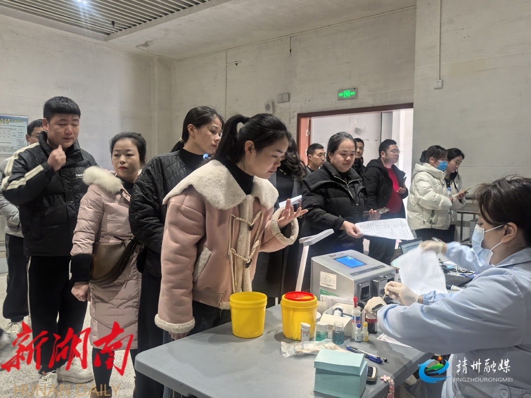 在靖州民族体育馆,前来献血的人们有序排队等候,在工作人员的指引下,依次完成信息登记、健康征询、血液初筛等工作。