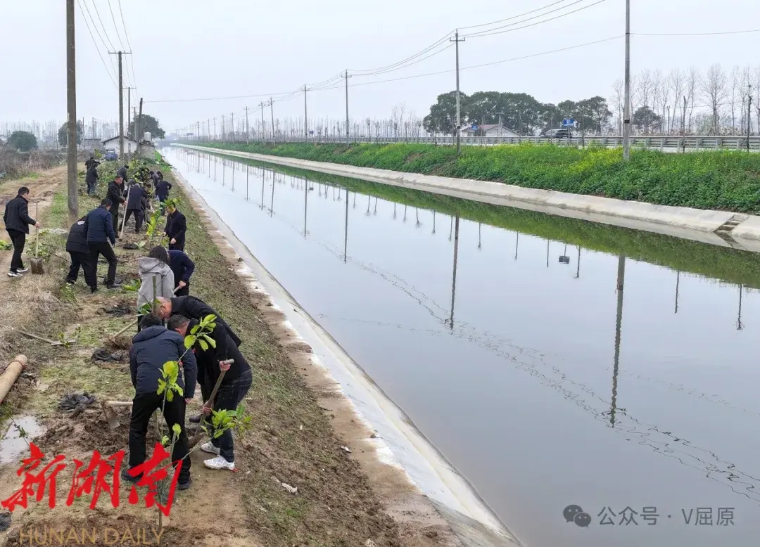 湖南日报·新湖南客户端3月12日讯(通讯员:姜静 周洋 何宇 )为深入贯彻落实习近平生态文明思想,将生态保护与经济发展相结合,推动生态旅游与乡村振兴融合发展,3月11日,屈原管理区在营田镇荷花村工业大道路南的东古湖区域,开展了一场别开生面的义务植树活动。区党委书记向科军,区党委副书记、管委会主任沈小星及全体在家区级领导,区直各部门班子成员,营田镇党政班子成员齐聚东古湖区域,以实际行动践行绿色发展理念。