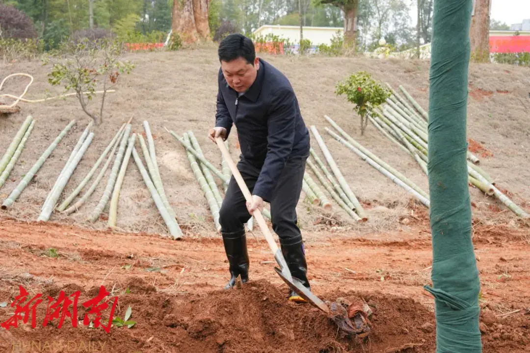 新沅江客户端3月12日讯 (记者 钟祖彪 黄曦 张劲扬 李咏澎)3月11日上午,沅江市委书记杨智勇,市委副书记、市长罗必胜带领全体在家市级领导及相关市直部门干部,来到新湾镇龙虎山林场开展义务植树活动,以实际行动为沅江大地增添新绿,助力生态文明建设。市委副书记、统战部长张心镜,市政协主席刘武一同参加。