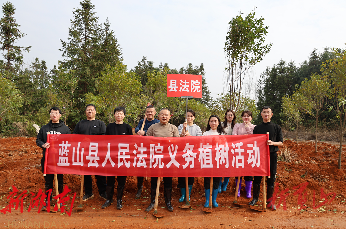 新蓝山客户端3月12日讯 (通讯员 卢康蕾)3月11日,蓝山县人民法院组织干警前往塔峰镇蒋家洞村义务植树基地,开展2025年春季全民义务植树活动,以实际行动弘扬雷锋精神,践行绿色发展理念,为春天增添一抹亮色。