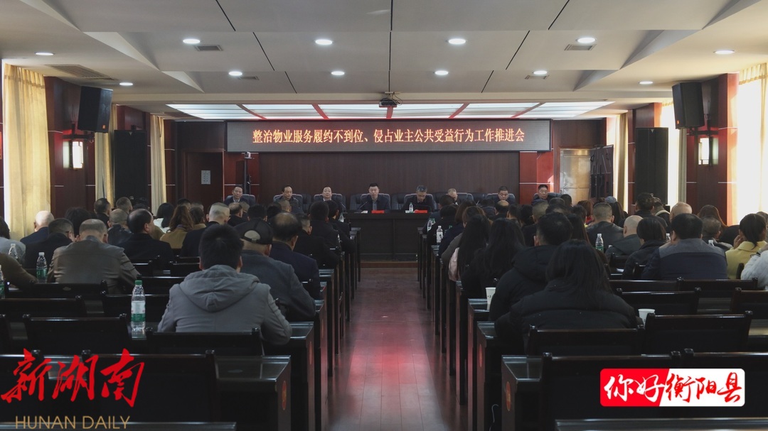 衡阳县融媒3月12日讯(记者:廖辉煌 ) 3月12日,我县召开整治物业服务履约不到位、侵占业主公共受益行动工作推进会,落实中央、省、市关于提升物业服务质量的决策部署,推动全县物业管理水平再上新台阶。