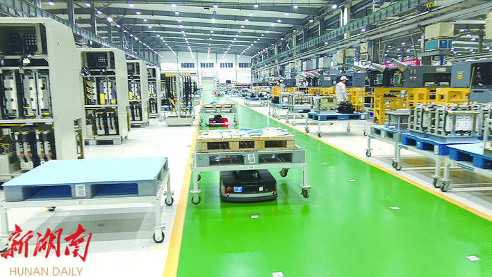 时代电气公司制造中心车间,机器人在配送物料。 株洲日报全媒体记者/李支国 摄