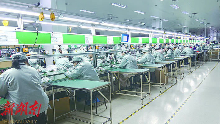 湖南长城公司智能硬件生产基地组装生产线。 株洲日报全媒体记者/李支国 摄
