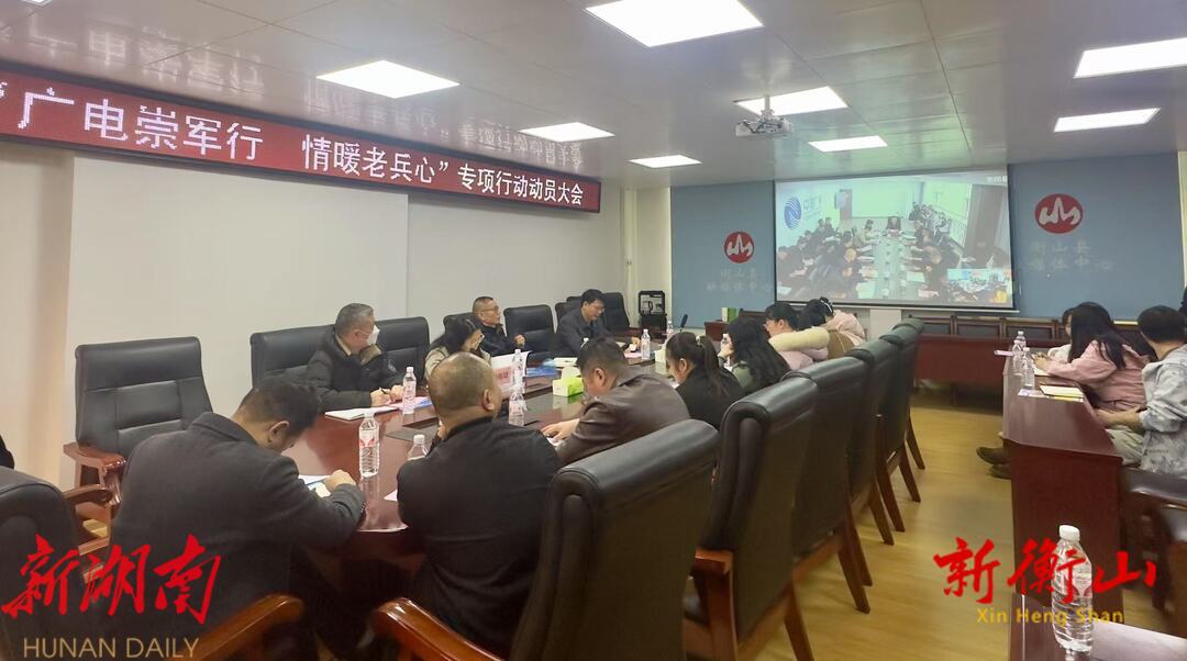新衡山客户端3月12日讯(记者 何思霞 刘星语)为推动退役军人事务部和国家广播电视总局等单位联合发起的“广电崇军行 情暖老兵心”专项行动落地落实,3月12日,衡阳市召开动员大会,安排部署相关工作。我县退役军人事务局、退役军人服务中心,中国广电衡山公司等相关单位负责人以视频会议形式参会。
