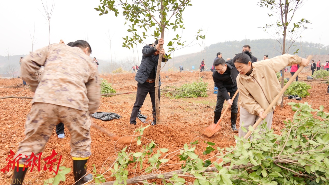 在植树现场,县领导与干部职工纷纷拿起铁锹、锄头等工具行动起来,一起分工协作,挖坑、扶苗、培土、浇水,用心种下一株株树苗,每道工序紧密衔接、配合默契,现场一派热火朝天的劳动场面。在大家的合力劳作下,1000多株无患子树苗很快便栽种完毕,不仅为乡村增添一抹绿意,也为更好推动乡村全面振兴增添了产业发展动能。