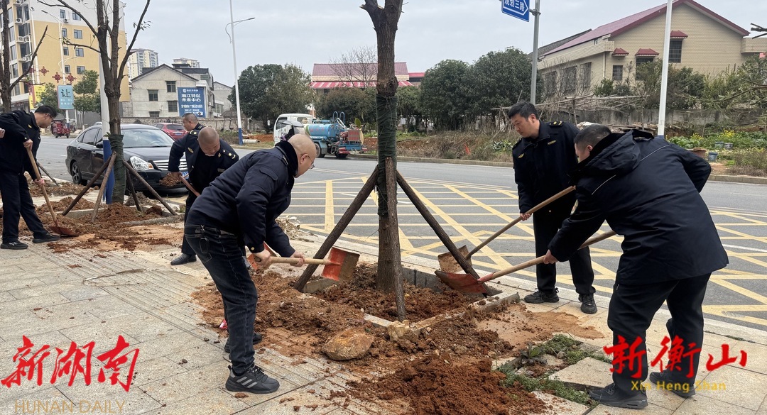 新衡山客户端3月12日讯(记者 胡程远 谢芳)春回大地,万物复苏,正是植树造林的好时节。为积极响应绿色发展号召,提升城市生态环境质量,3月11日,县城管执法局在紫巾路开展植树造林活动,以实际行动为衡山增添一抹新绿。