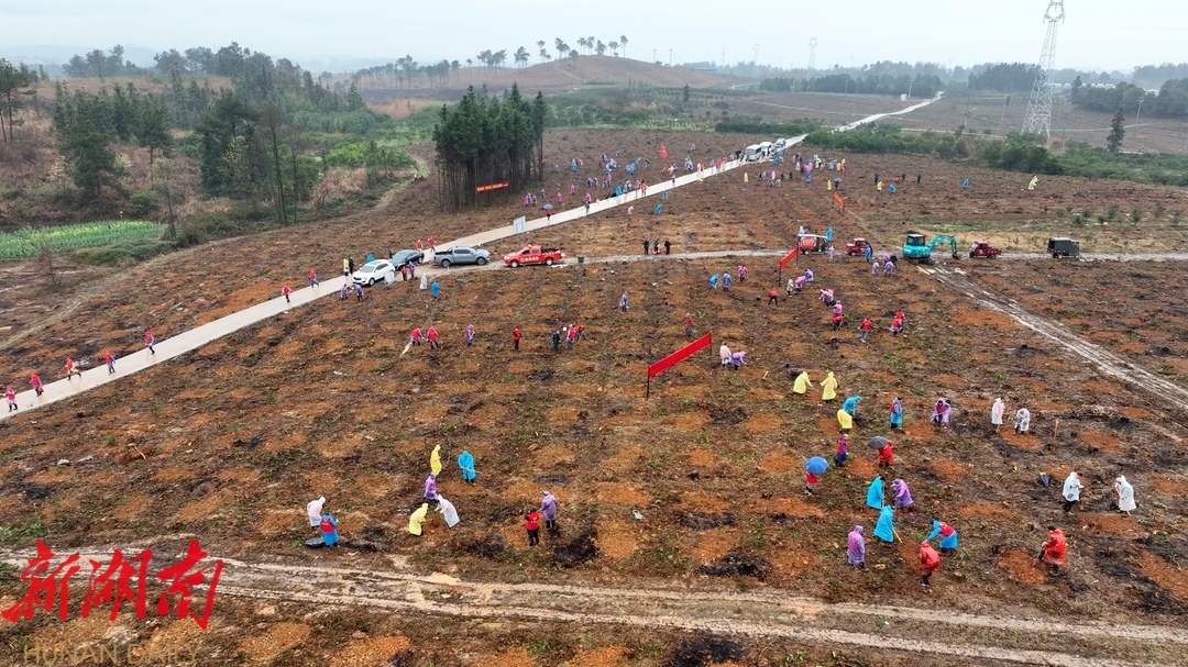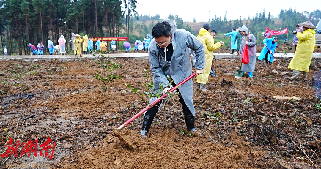 植树现场到处是一派热火朝天的劳动场面。吴韬等县党政军领导和志愿者们两人一组或三人一队,大家默契配合,分工协作,挥锹铲土、扶苗入坑、填实新土......现场忙碌而有序。经过一上午的劳动,共种植油茶树苗4000余株,刚种下的一株株树苗昂然挺立,错落有致,在微风细雨中展现出勃勃生机,为大吾坳山场再添新绿。