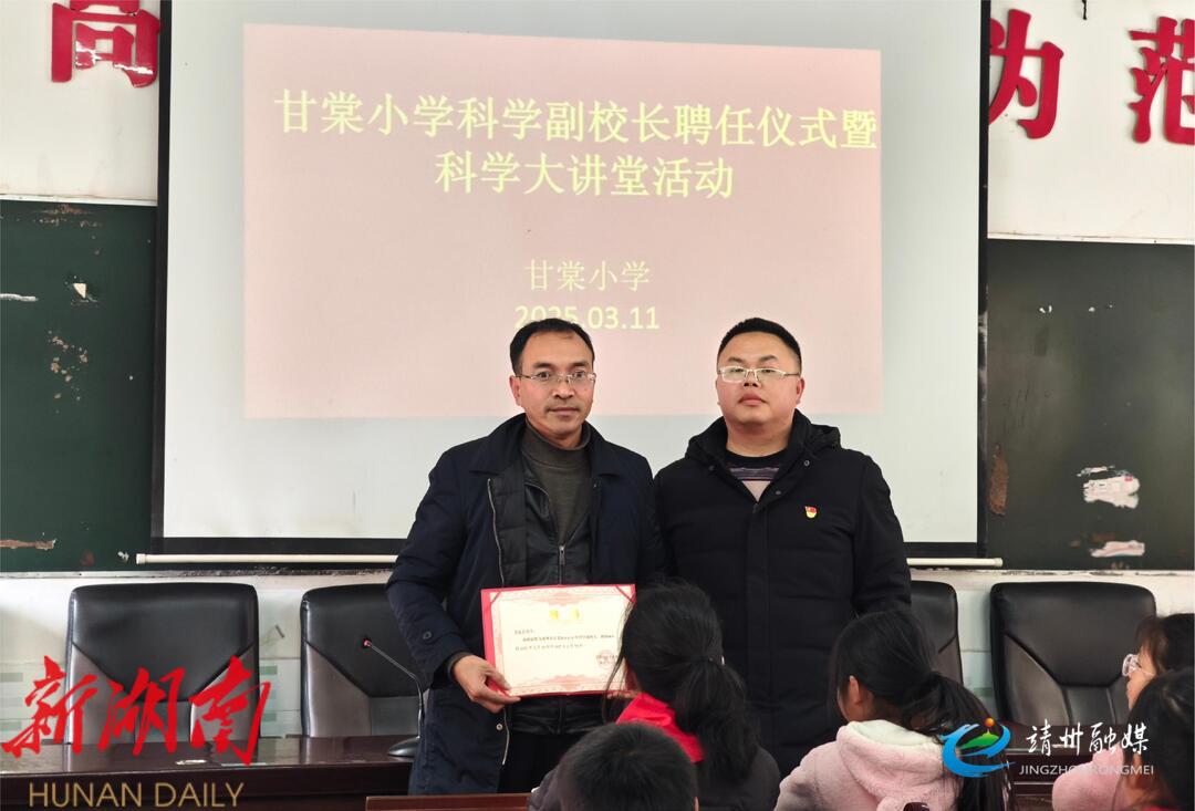 靖州融媒3月12日讯 (记者 吴丽雯)3月11日,靖州苗族侗族自治县甘棠镇中心小学举行科学副校长聘任仪式。