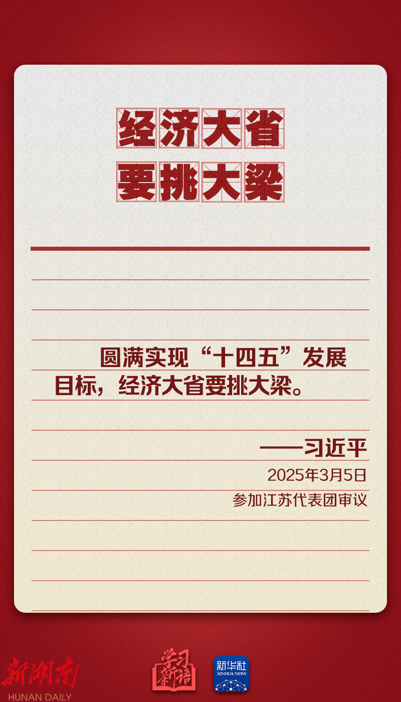 “经济大省要挑大梁”“一视同仁对待各种所有制企业”“强化教育对科技和人才的支撑作用”“实现我军建设‘十四五’规划圆满收官”……本期“学习新语”,我们梳理了总书记在今年两会上的讲话要点,一起来学习!
