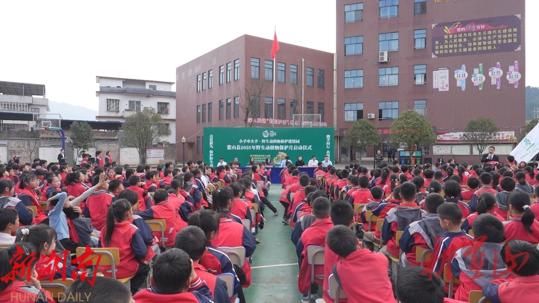 新蓝山客户端3月12日讯 (通讯员 王玉珏 盘俊杰 唐淑云)3月11日,蓝山县2025年野生动植物保护月活动启动仪式在明德实验小学举行。县委副书记、县长邓群出席并宣布活动启动,副县长唐建伟致辞。