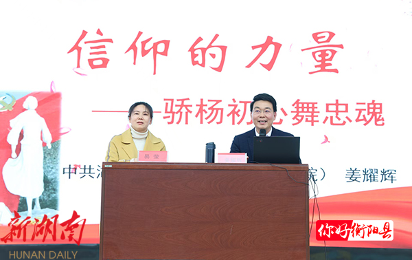 衡阳县融媒3月12日讯(记者:张兴宇 通讯员:李宏南 ) 为进一步完善学校“思政课程+课程思政”协同育人新格局,3月10日下午,衡阳县四中邀请省委党校副教授姜耀辉来校,为师生带来了一堂题为“信仰的力量——骄杨初心舞忠魂”的思政教育课。